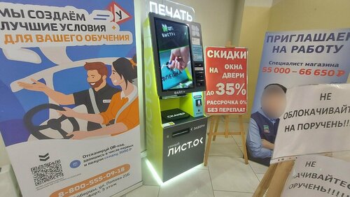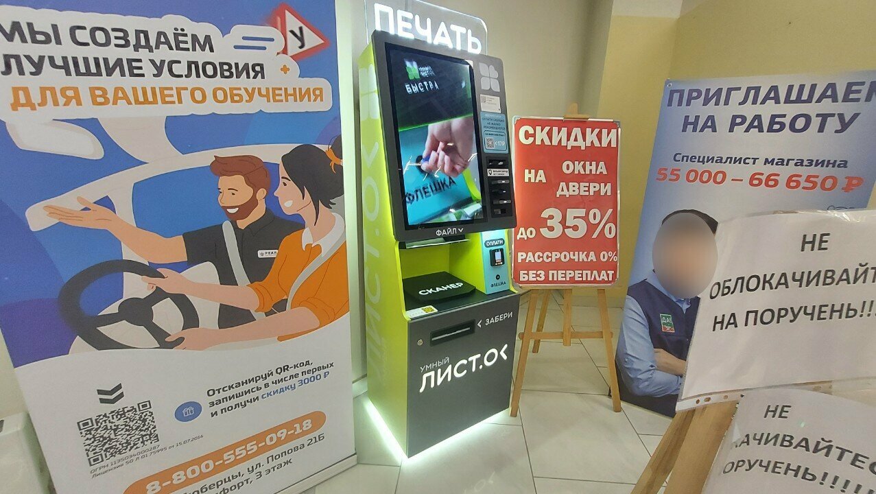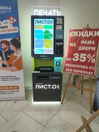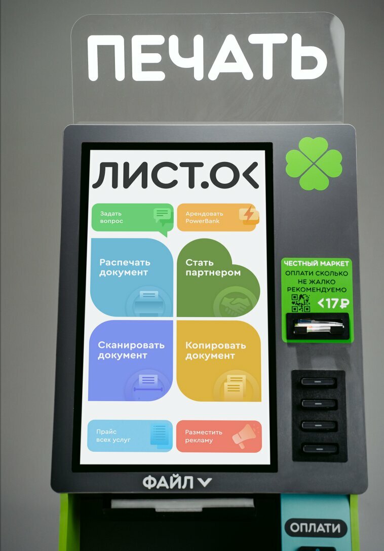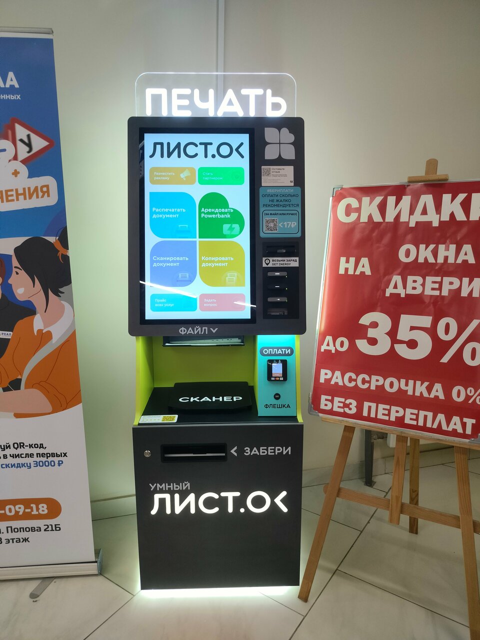 Печатная станция черно-белой печати в формате А4 через USB, telegram и веб-сервис. А также раздаем power bank'и для Ваших гаджетов, размещаем объявления и рекламу для Вашего бизнеса на нашем экране.
